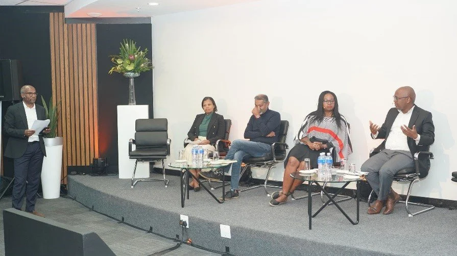 The moderator Mustapha Kleiche, Head of IDFC Facility, and the panelists Chantyle Shongwe (DBSA), Dhesigen Naidoo (PCC), Dorah Modise (C40), Unathi Mntonintshi (SALGA). © DBSA